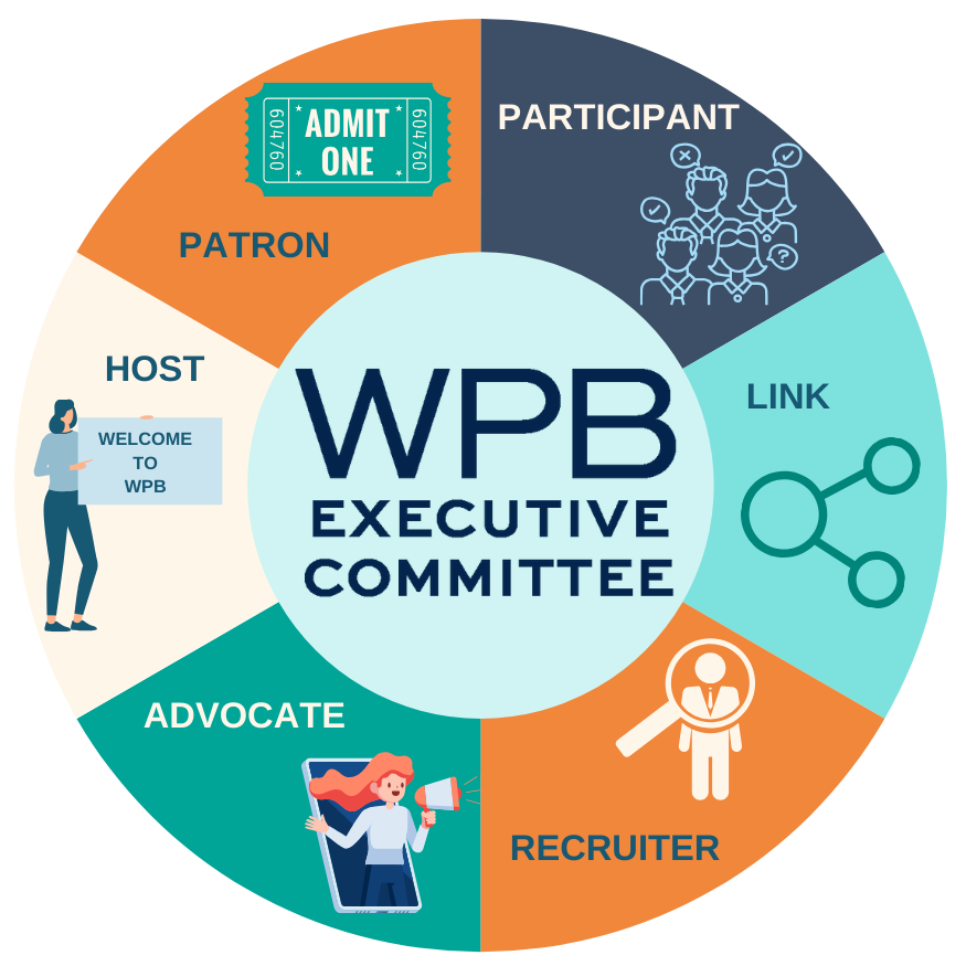 The WPB Executive Committee is responsible for advocating for the organization within their circles of influence, suggesting educational programming topics and helping to secure speakers, participating with mentoring initiatives, and identifying potential new members and partners.